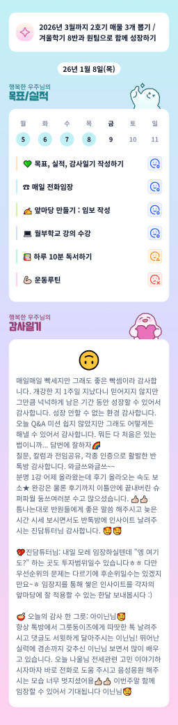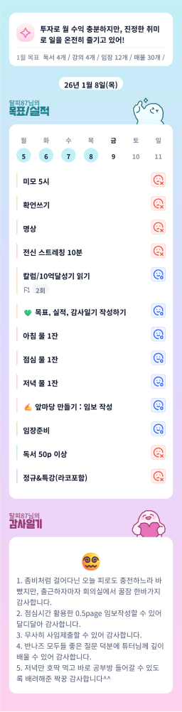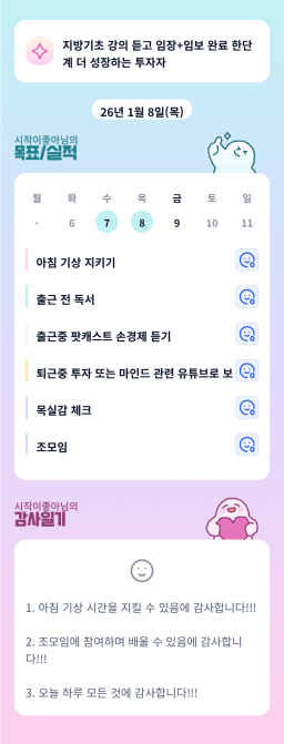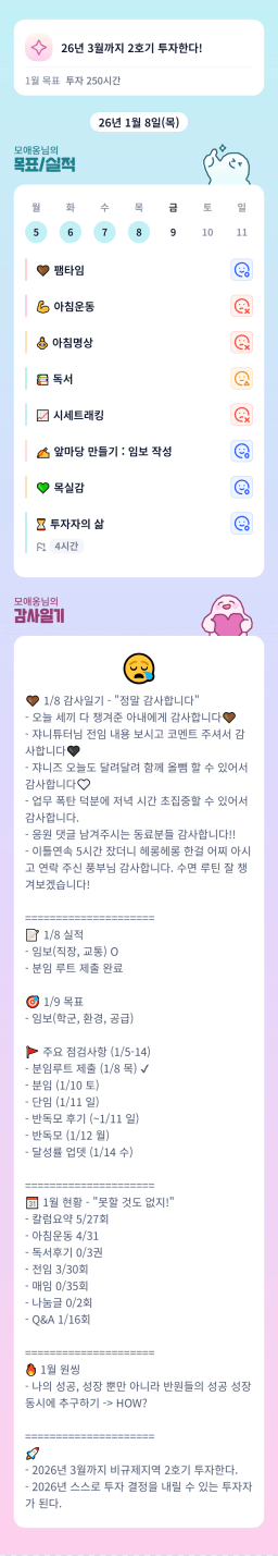 [지투실전 27기 쑤튜터님과함께쑤욱쑤욱성장하는2린0ㅣ들 티끌모아부자] 26.01.8. 목실감