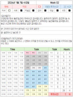 [짱이사랑맘] 1/8 목실감칭반시계부