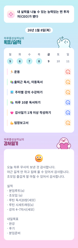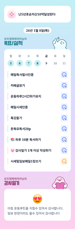 [지투실전 27기 쑤튜터님과함께쑤욱쑤욱성장하는2린0ㅣ들 티끌모아부자] 26.01.8. 목실감