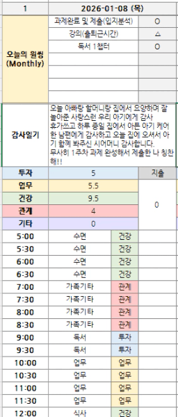 1/9 목/실/감 & 시간가계부 [해바라기v]