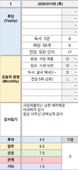 1월 8일 목요일 목실감