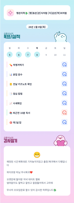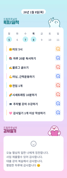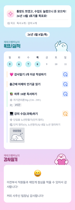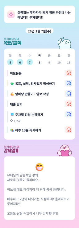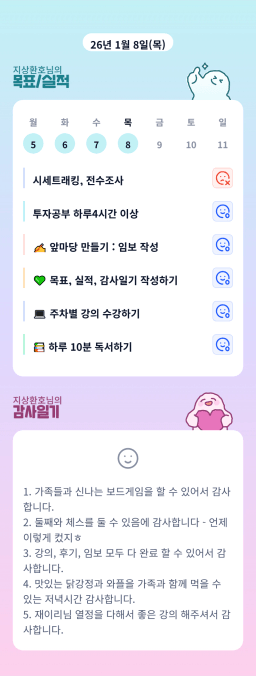 [실준72기 15조 1어나… 임ㅈ5가야지… 재테크햄찌] 매일목실감 1.8.