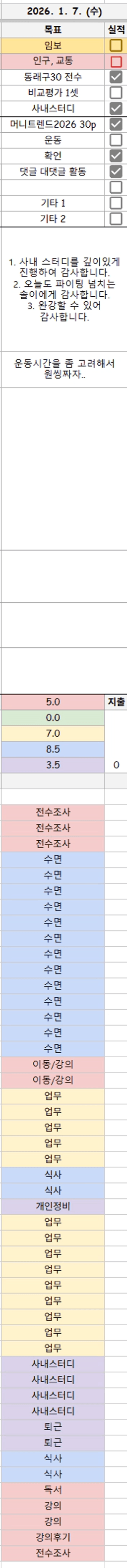 [스테디킴] 1월 8일 목실감, 시간가계부