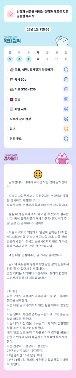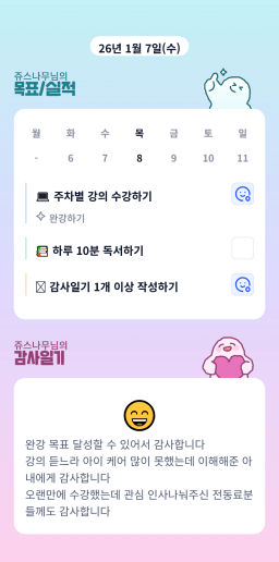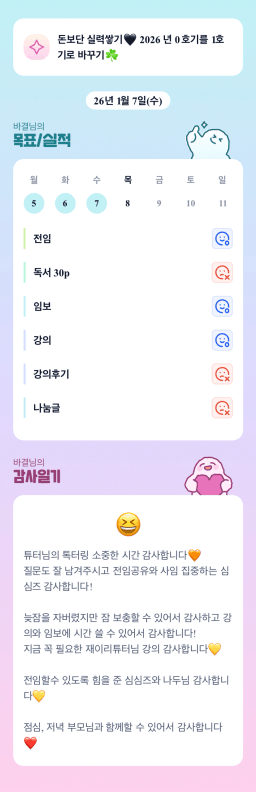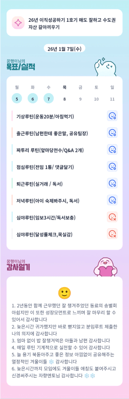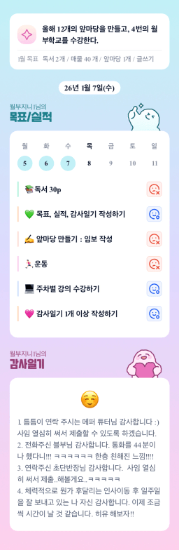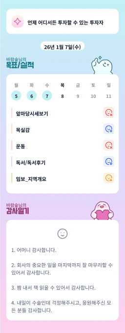 [러버블리v] 26.1.8목표, 1.7 감사일기 + 칭반