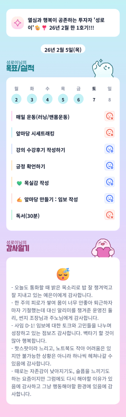[실전 34기 유 스틸 마이 넘버 원(1) LIS9OA 성로이] '26. 2. 4. ~ 5. 목실감