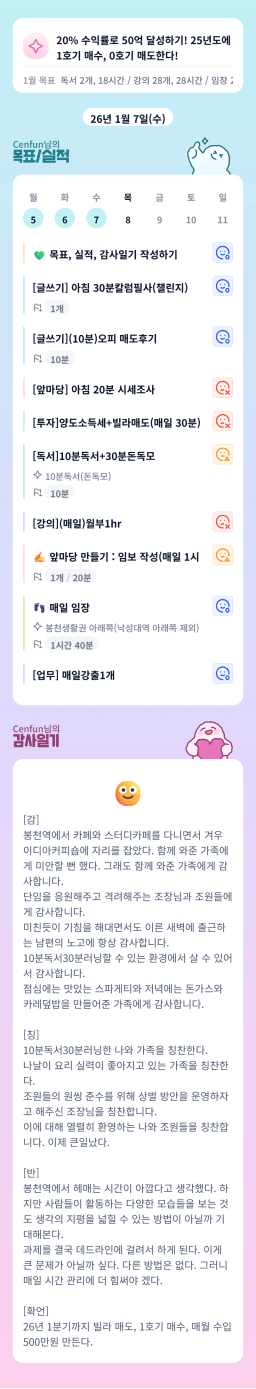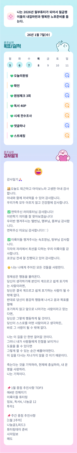 [실준72기 아파트 4고8고 인생역전 부자되조♡ 라오니즘] 260107 목실감