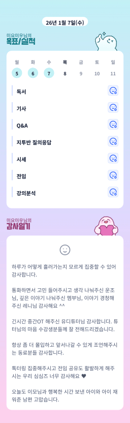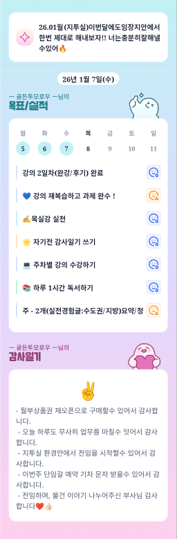 [지투기 32기 2처럼 작고 소듕하면 5떡하조 모아가] 26.01.07 목실감