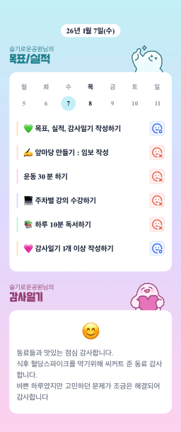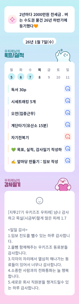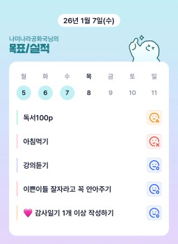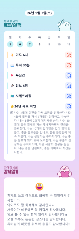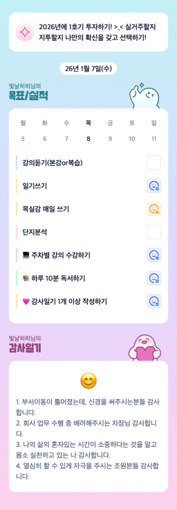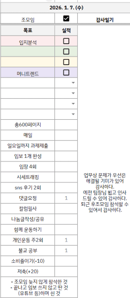 [정의] 2026년 1월 8일 목표, 실적, 감사일기