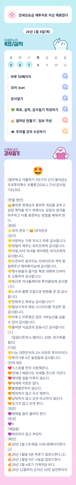 [월부학교 겨울학기 5만가지 단지 쓸어담는 프로투자멩수 브롬톤]2026.1.7(수)감사일기#1503