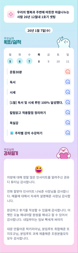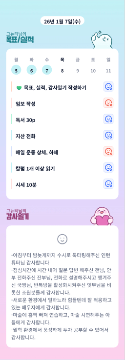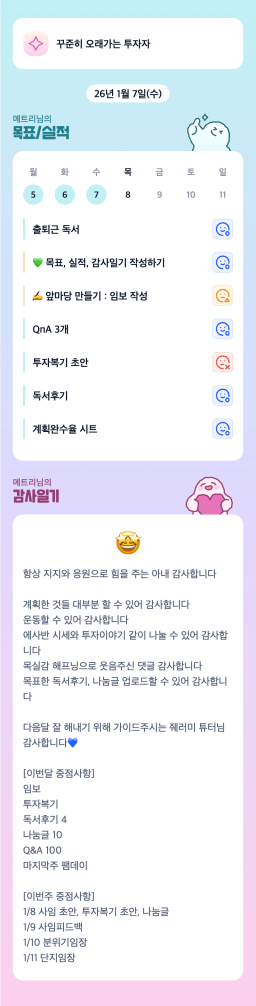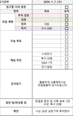 [실준 7ㅣ필코 2뤄내서 등기7조 김다올] 26.1.7.(수) 목실감