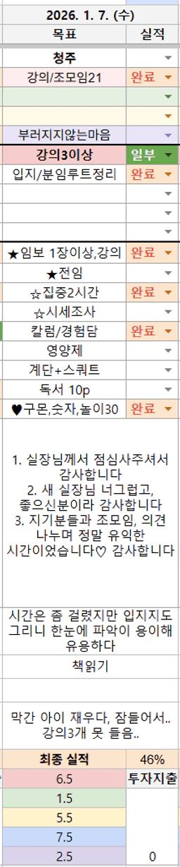 [지투기 32기 최강 46조 미뽀기찐] 26. 1/6~1/7 목실감