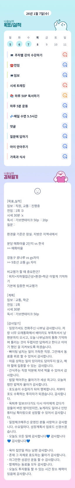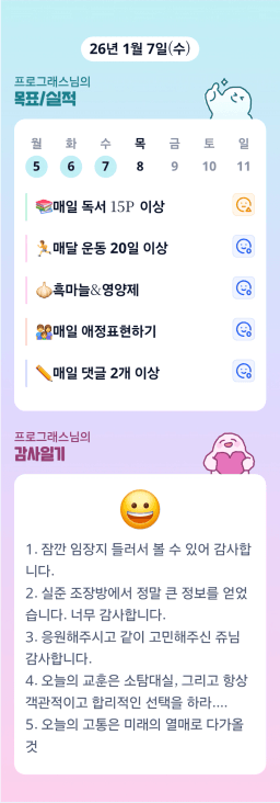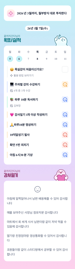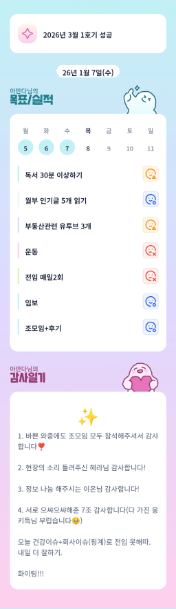 [실준72기 경제적자유를 위해 5늘도 꾸준히하조 리치리치산] 1월 7일 목실감