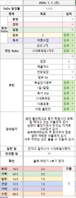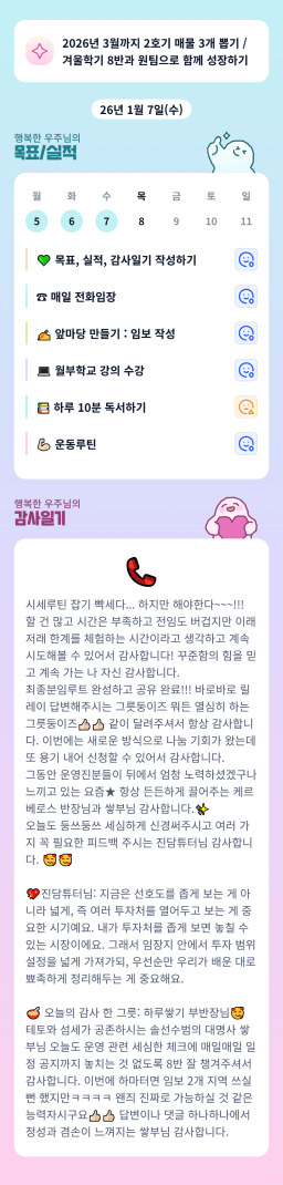 [실준72기 경제적자유를 위해 5늘도 꾸준히하조 리치리치산] 1월 7일 목실감