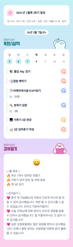 [지투기 32기 57조 시작이좋아] 2026.01.07 목실감 완료!