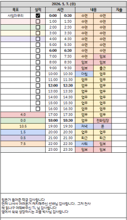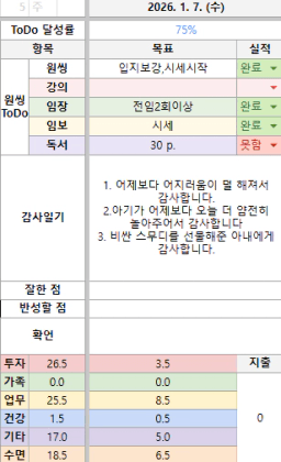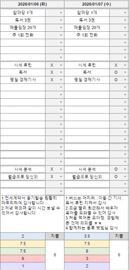 [오엪씨] 1/6 ~ 1/7 목실감시계부