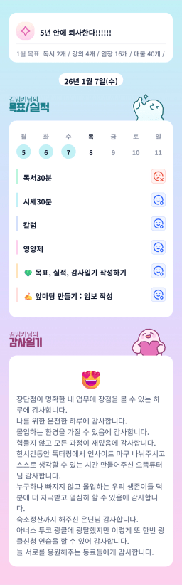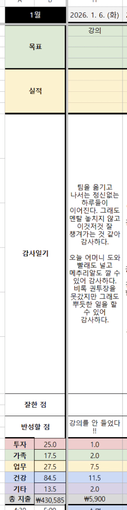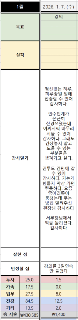 [지투27기 마침내!그와 온전히 실력쌓아 2제 1탑 갱투] 1.6~1.7. 실적 / 1.8 목표 / 감사일기