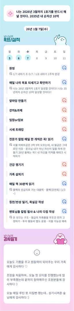 [실전준비반 72개월 동안 앞마당 5️⃣0️⃣개 가능하조❤️ 꿈찾자] 26.1.7 목실감