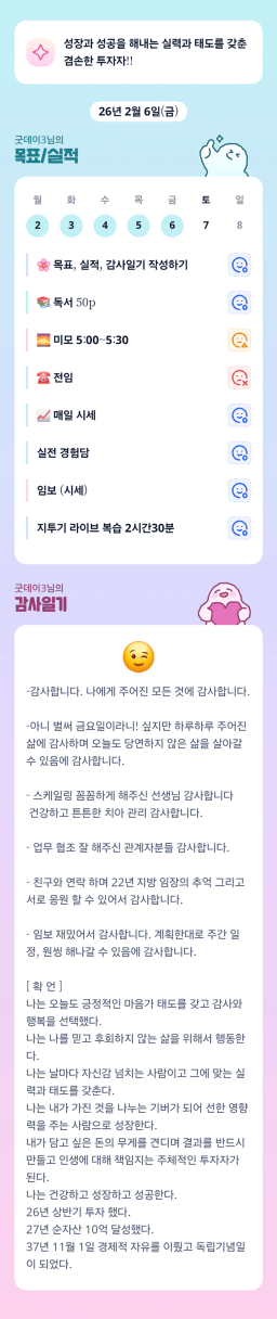 [운조 버스 타고 오랜 투자로 2어질조 학생] 2026년 2월 6일 목실감🌸