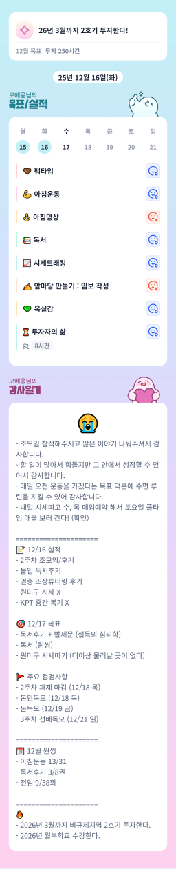 [월부학교 가을학기 ㅈ1금 ㅇ1순간, 진심 담아 성장하는 우리♥ 펭쥐니] 목실감 12/14-16