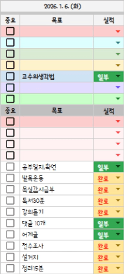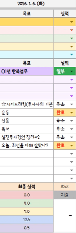 1/4~6(일~화) 목표실적 감사일기