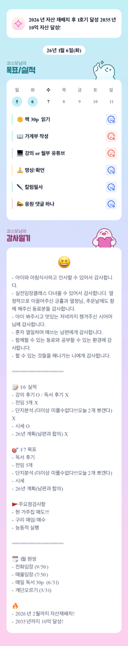 [내마실 엔젤빈쓰 튜터님과 함께하니 4주? 아니조~ 3주만에 내집마련 성공했조 김다올] 26.1.6.(화) 목실감