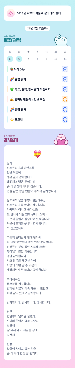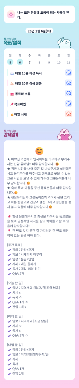 [지투 반나이튜터님과 원팀2면3단계성장할조_히히s] 260106 매일목실감