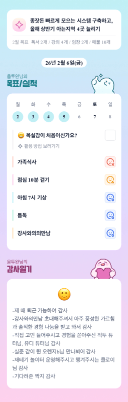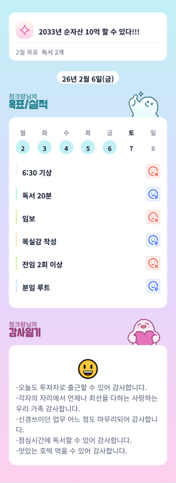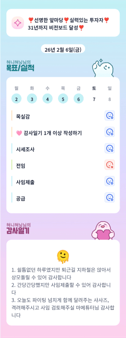 [우2ㅣ 모두 광명 뽀개고 투자자로 성ㅈ6했조 오엪씨] 2/1 ~ 2/6 목실감시계부