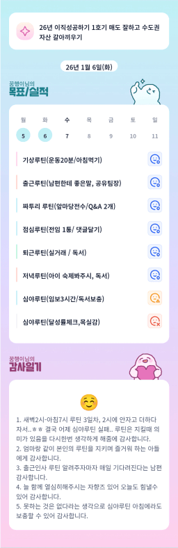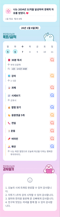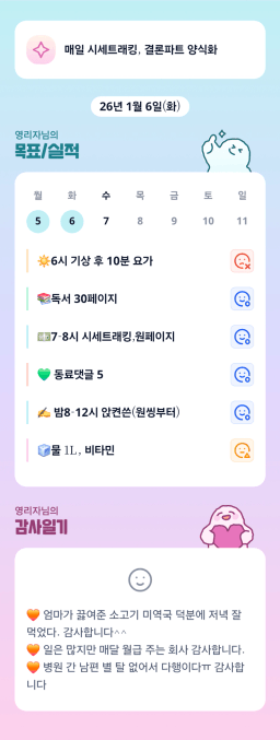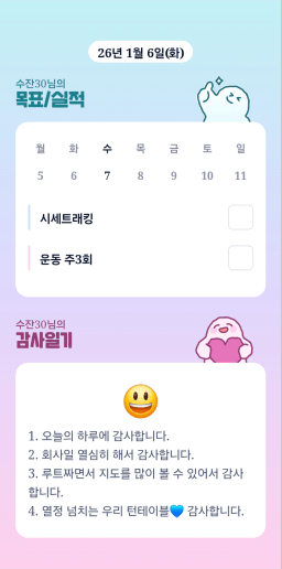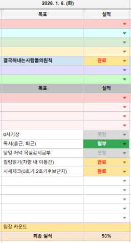 [정의] 2026년 1월 7일 목표, 실적, 감사일기