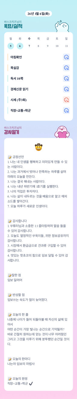 [지투실전 27기 쑤튜님과함께 🌱쑤욱쑤욱 성장하는 2린0ㅣ들 바스크치즈] 260106 목실감
