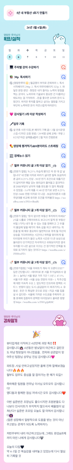 [지투실 27기 거봐 룰루랄라 튜터링 받고 그 집 4길 잘했지 풍월주인] 매일목실감 2026 0106