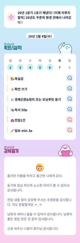 [월부학교 겨울학기 그 겨울, 자향ㅇ1 분다❄️ 여유로운리치] 2026.2.5~2.6 감사일기