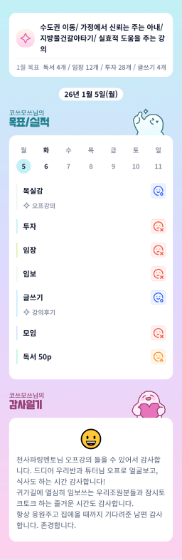 [지투실27기거봐룰루랄라튜터링받고그집4길잘했지_하나씩]매일목실감26.01.05