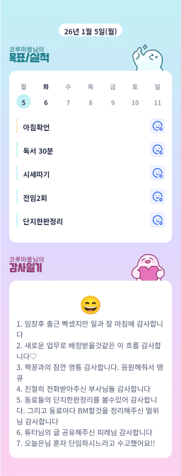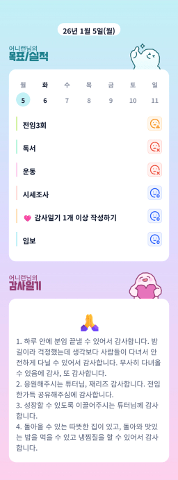 [지투 반나이튜터님과 원팀2면3단계성장할조_히히s] 260105 매일목실감