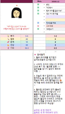 [성장함🧡] (2026.1.6.) DAY320 목표,실적,감사일기,시간가계부