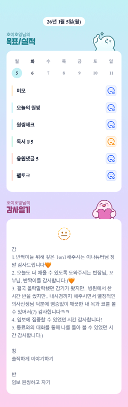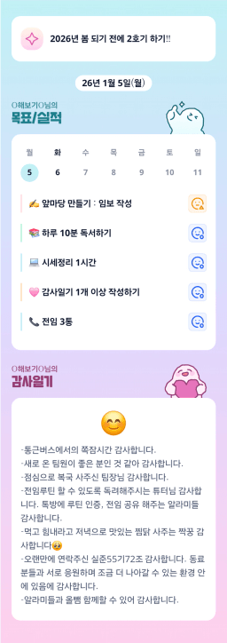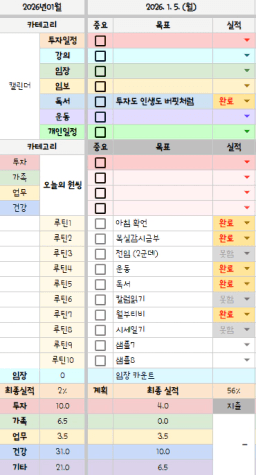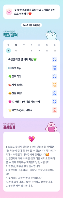 1/5 목표, 실적, 감사일기, 시간가계부 [주시부]