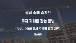 공급 속에 숨겨진 기회를 찾는 법 ( feat. 수도권에서 주목할만한 지역 ) [리스보아]