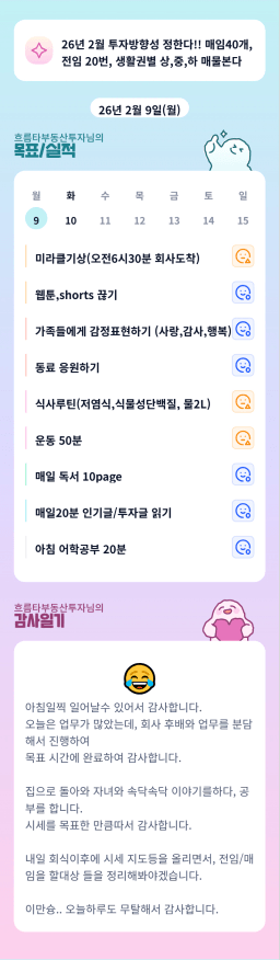 260209 목표, 실적, 감사일기 작성