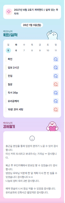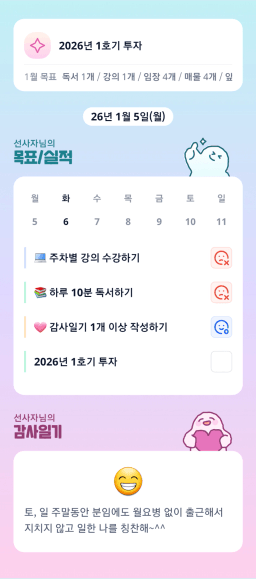 26년 1/6 목표,실적,감사일기,시간가계부[헤라클래스]
