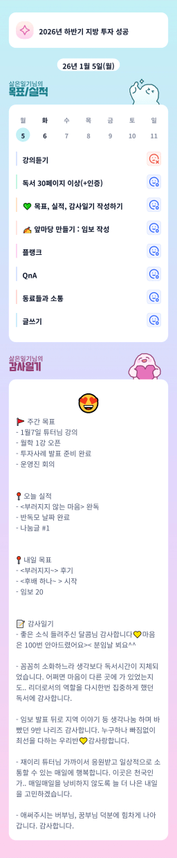 [월부학교 겨울학기 밥알즈! 좌로굴러! 우로굴러! 3번 복창 악!!! 수수진] 20260105 목실감시금부