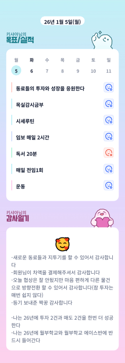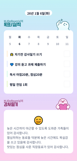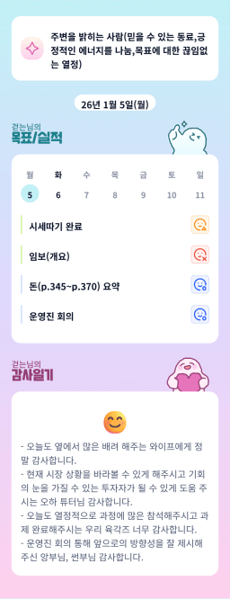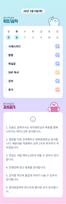 [지투실 27기 미요미우 튜터님과 2심전심 S2 지구별조이] 매일목실감 260105