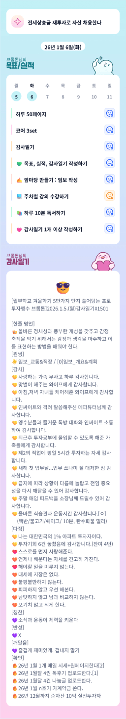 [월부학교 겨울학기 5만가지 단지 쓸어담는 프로투자멩수 브롬톤]2026.1.5.(월)감사일기#1501