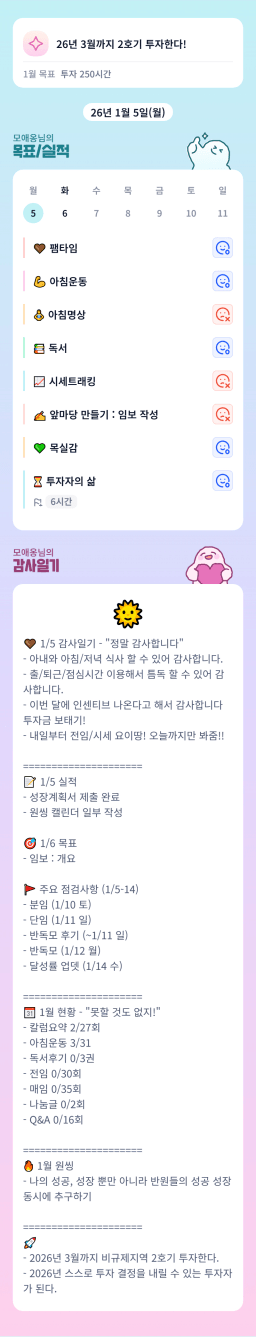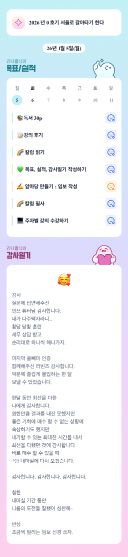 [지투실전 27기 쑤튜님과함께 🌱쑤욱쑤욱 성장하는 2린0ㅣ들 럭셔리초이] 매일목실감 26.01.05