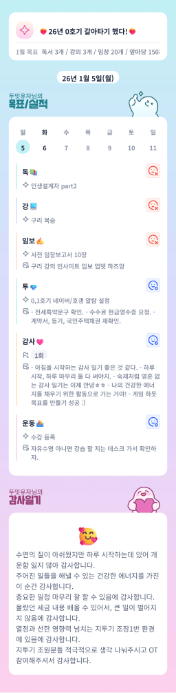 [지투 27기 딩동댕🎵 전국~~등기 ㅊ17ㅣ 자랑🎤 기린] 목실감 26.01.05
