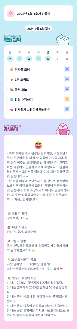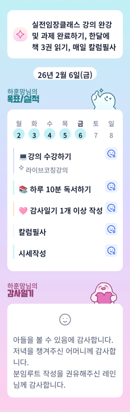 1/31-2/6 매일목실감 90일 챌린지 [홈스윗]