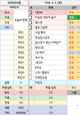 [백만채봉] 4월 2일 목실감 누적 81일, 연속 81일 진행중