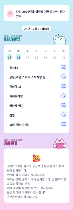 [열기89기 비전보드 속 드림하우스로 24갈조♡ 재테크햄찌] 매일목실감 12.16.