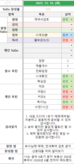 [열기89기 농부처럼 ㅆ1뿌려서 8채로 은퇴할조 하루쌓기] 251216 목실감