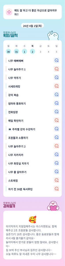 [체다치즈사랑] 4.2(목) 목실감 누적 43일, 연속 19일 진행중