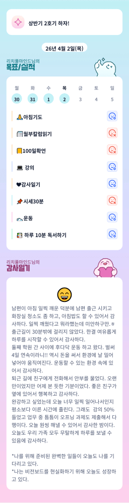[리치풀마인드] 목실감 누적 187일, 연속 6일 진행중