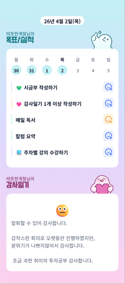 [따뜻한계절] 목실감 누적 168일, 연속 159일 진행중